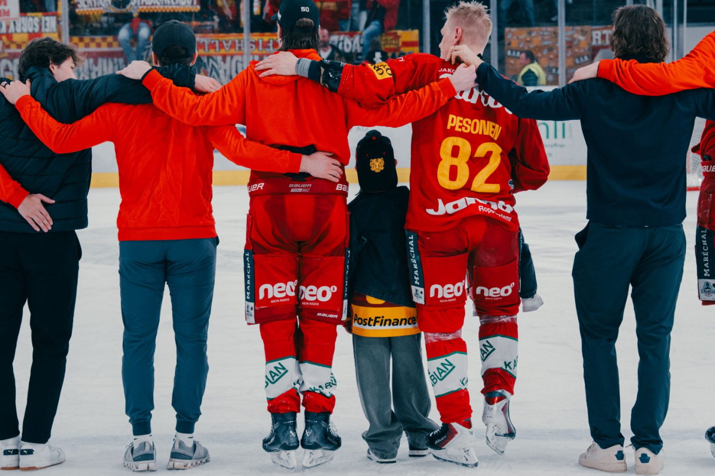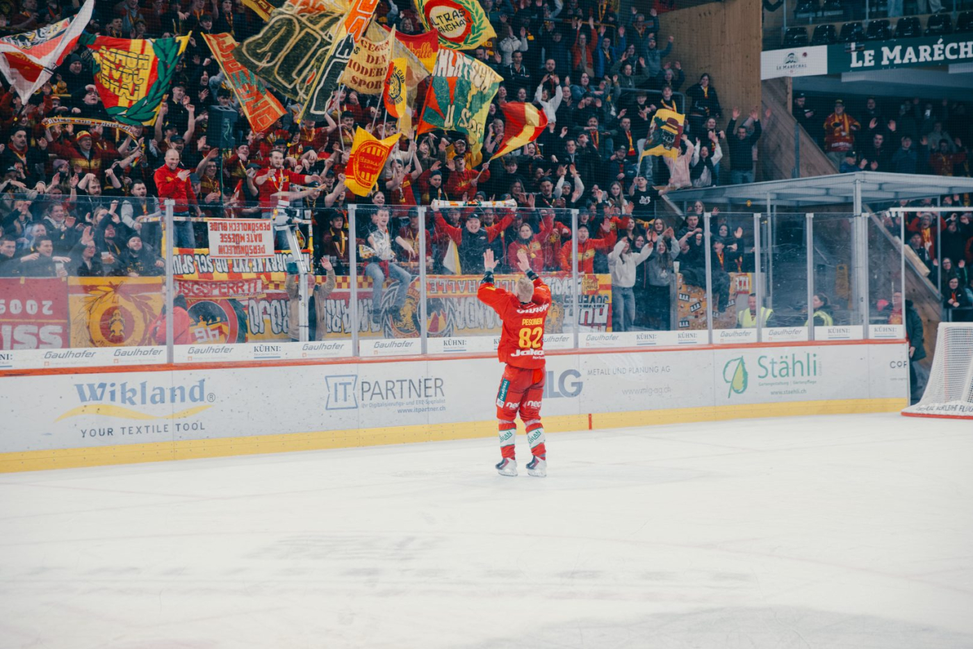 Die Fans der SCL Tigers verabschieden Harri Pesonen mit einer Choreo. Sportlich endet das letzte Qualifikationsspiel gegen die ZSC Lions mit einer 0:2-Niederlage.