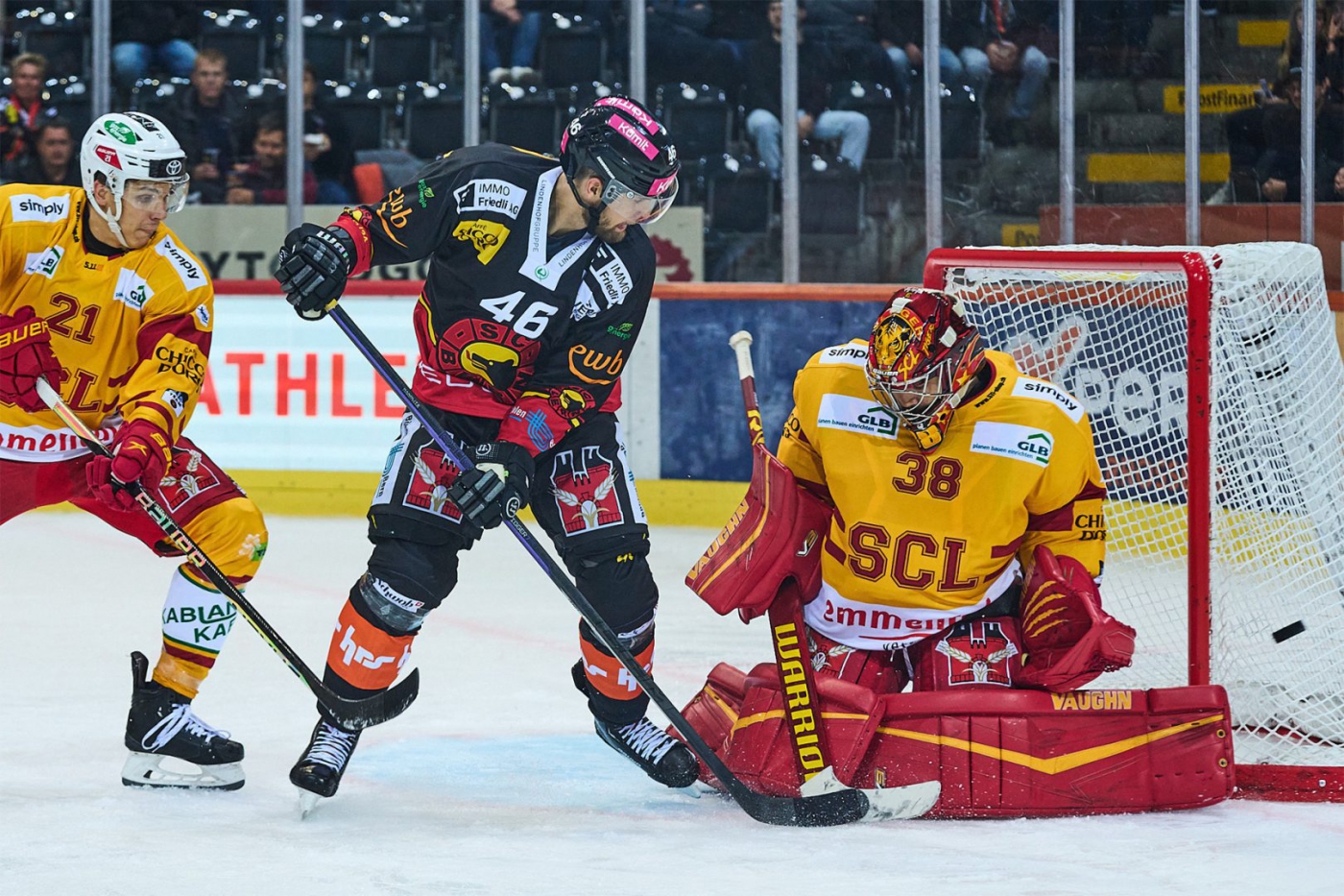 Mit dem dritten Tor innert fünf Minuten ist der Arbeitstag von Luca Boltshauser beendet und Stéphane Charlin übernimmt. Nach der furiosen Startphase beruhigt sich das Geschehen und die Tigers kommen besser in die Partie. Dennoch bleibt der SC Bern spielbestimmend – so trifft Moser in der 13. Minute den Pfosten. Ein weiteres Tor fällt jedoch nicht.