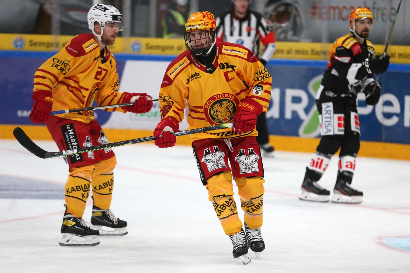 SCL Tigers: Punnenovs; Huguenin, Leeger; Blaser, Erni; Grossniklaus, Schilt; Zryd; Pesonen, Saarela, Petrini; Olofsson, Grenier, Loosli; Sturny, Schmutz, Berger; Salzgeber, Diem, Schweri; Lapinskis