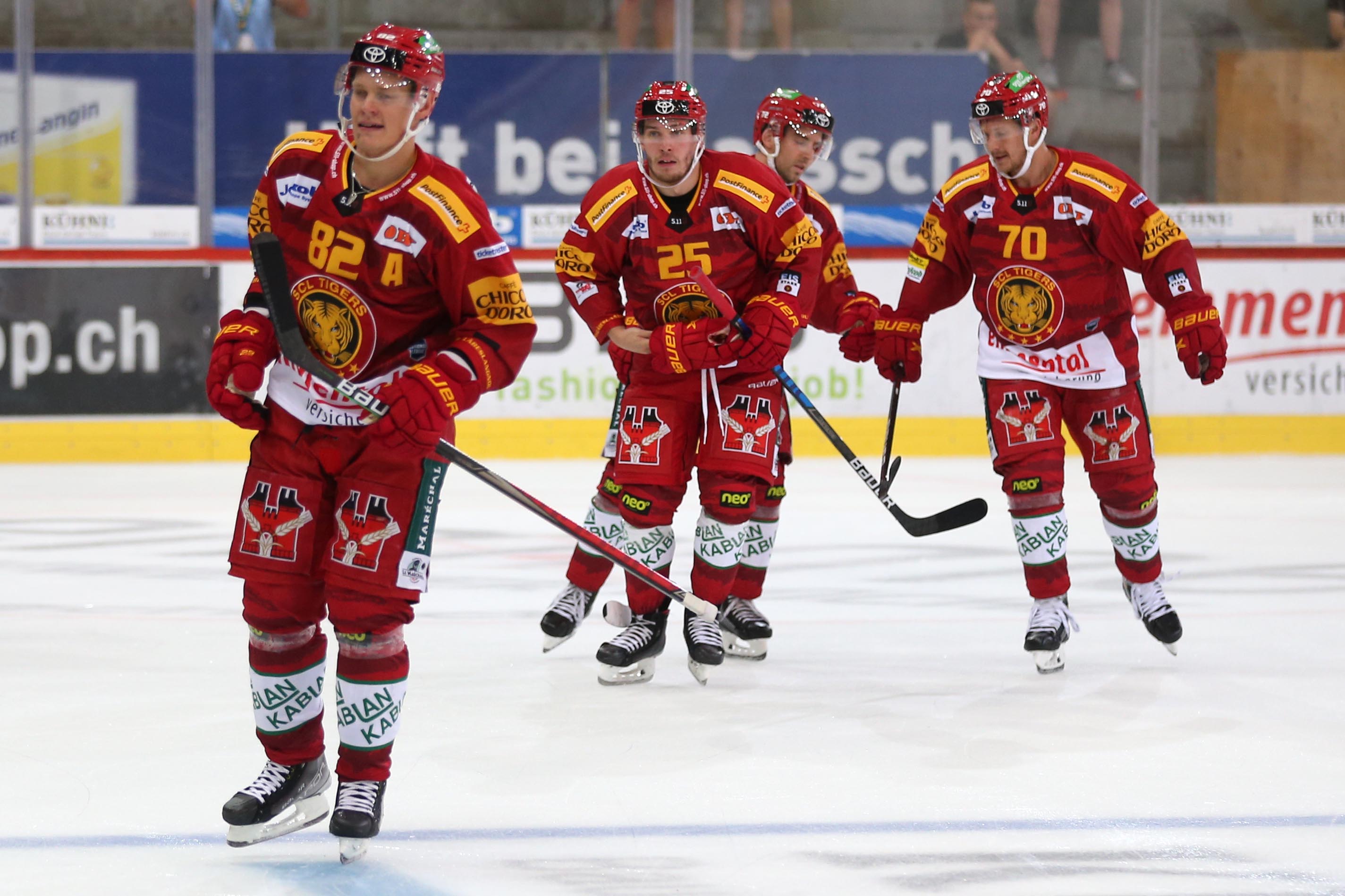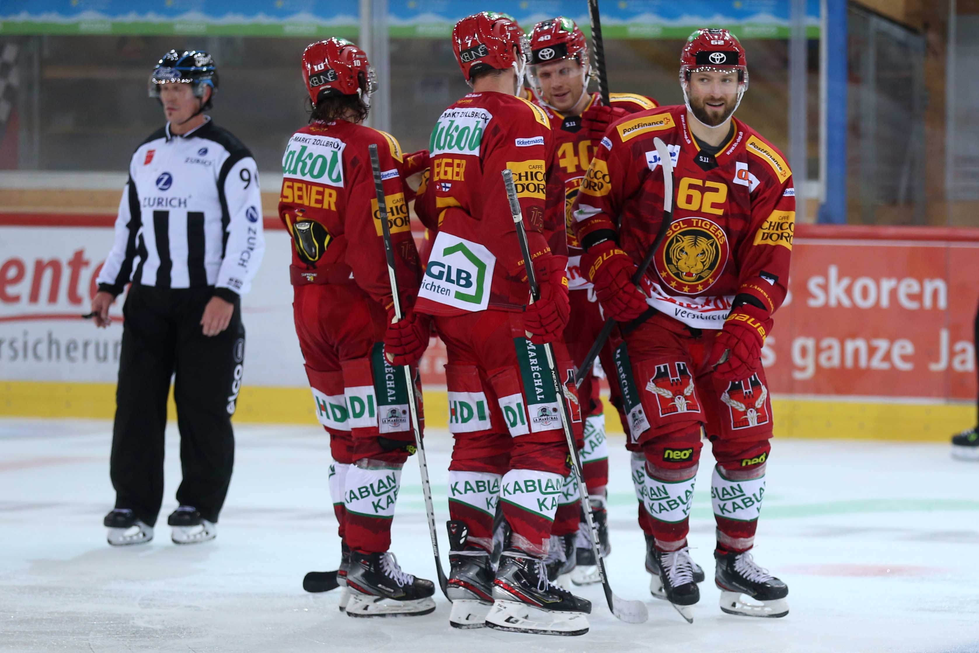 SCL Tigers: Punnenovs; Erni, Huguenin; Elsener, Leeger; Grossniklaus, Blaser; Guggenheim; Pesonen, Saarela, Petrini; Sturny, Schmutz J., Berger; Olofsson, Grenier, Weibel; Loosli, Diem, Langenegger; Dostoinov, Salzgeber;
