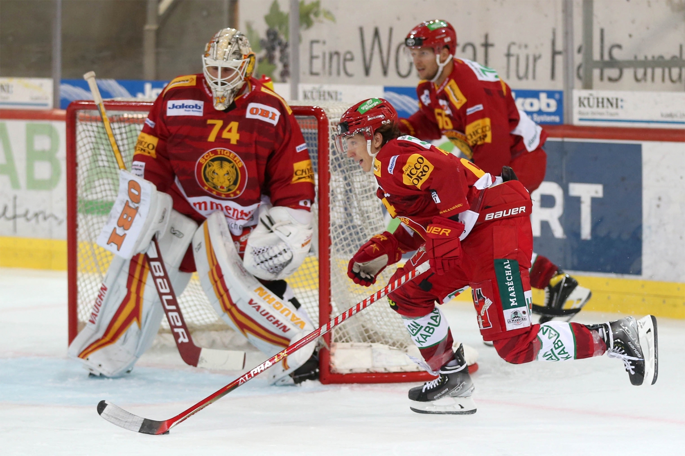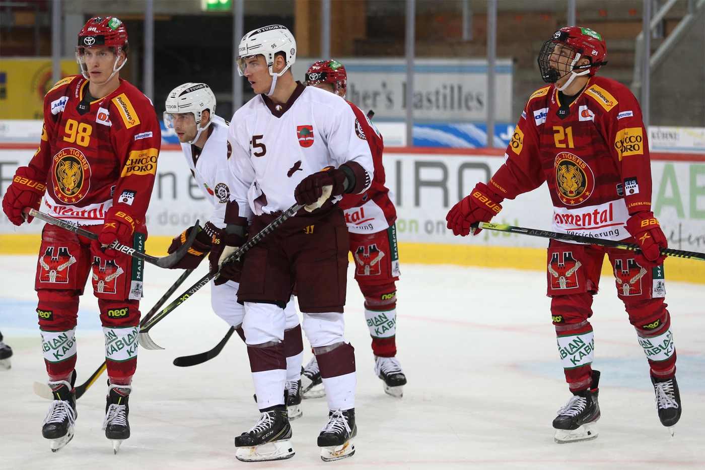 SCL Tigers: Punnenovs; Leeger, Huguenin; Guggenheim, Blaser; Grossniklaus, Schilt; Aeschbach; Sturny, Schmutz, Berger; Salzgeber, Diem, Schweri; Loosli, Saarela, Petrini; Olofsson, Grenier, Weibel; Lapinskis